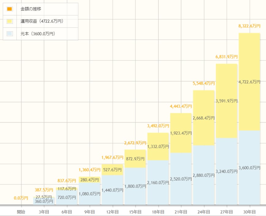 想定利回りが5%だった場合、65歳時点で運用収益は4722万6000円になりました(図表5参照)。