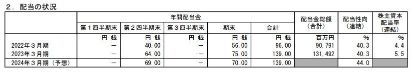 - 2023年3月期・期末配当:75円