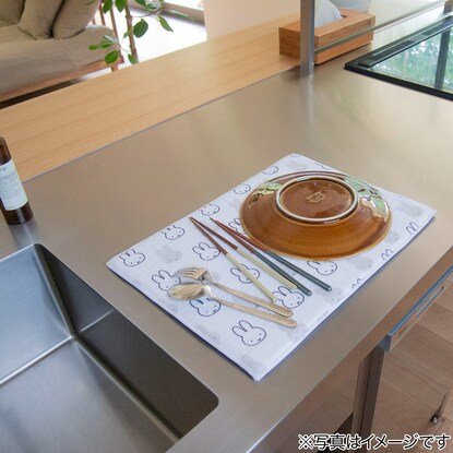 ミッフィーの顔などが一面にプリントされた、ちょっとした洗い物を置くのに便利な水切りマットです。こちらもホワイト、グレー、ライトグレーの3種類があり、それぞれミッフィーの表情やデザインが異なります。