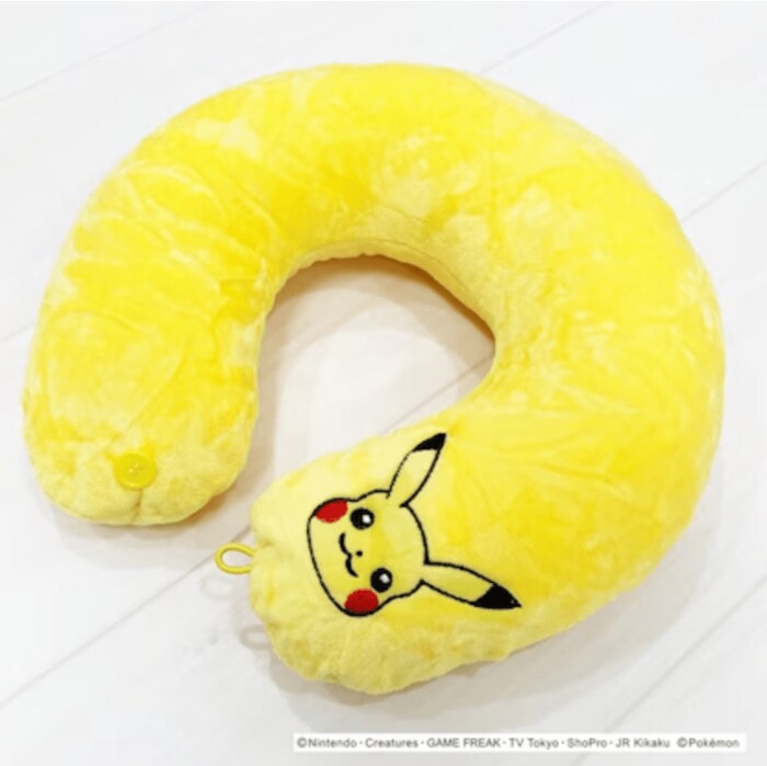 ピカチュウのぬいぐるみのような見た目をしたネックピローです。側面についたファスナーを開けて中材のビーズを移動させると、ピカチュウの顔がワンポイントになった、U字型のネックピローへと大変身します。