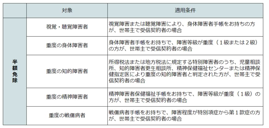 NHK受信料が免除される条件として、【図表】の項目が設定されています。