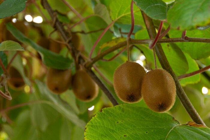ツル性植物のキウイは、家庭でも育てやすい果実。鉢植えにしてオベリスクなどに沿わせると、キレイな見た目を保ちながら育てることができます。