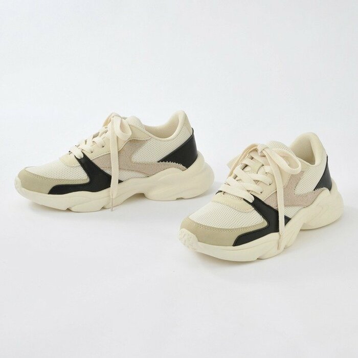 配色がおしゃれな厚底スニーカーです。WEB予約可能なアイテムです。ヒールの高さは約4.5cmです。自然と脚を長く見せてくれます。