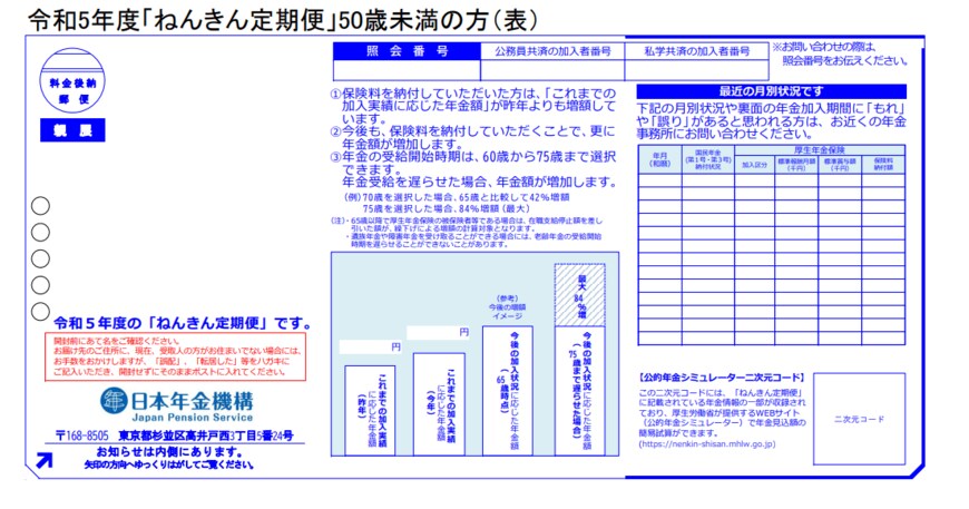 50歳未満の人に届くねんきん定期便は、以下の通りです。
