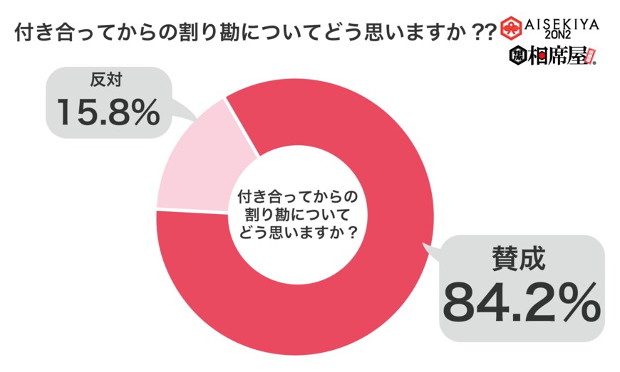 調査結果によると、男女の割り勘に賛成と答えた人の割合は、「付き合う前」で77.9%、「付き合ってから」だと84.2%。