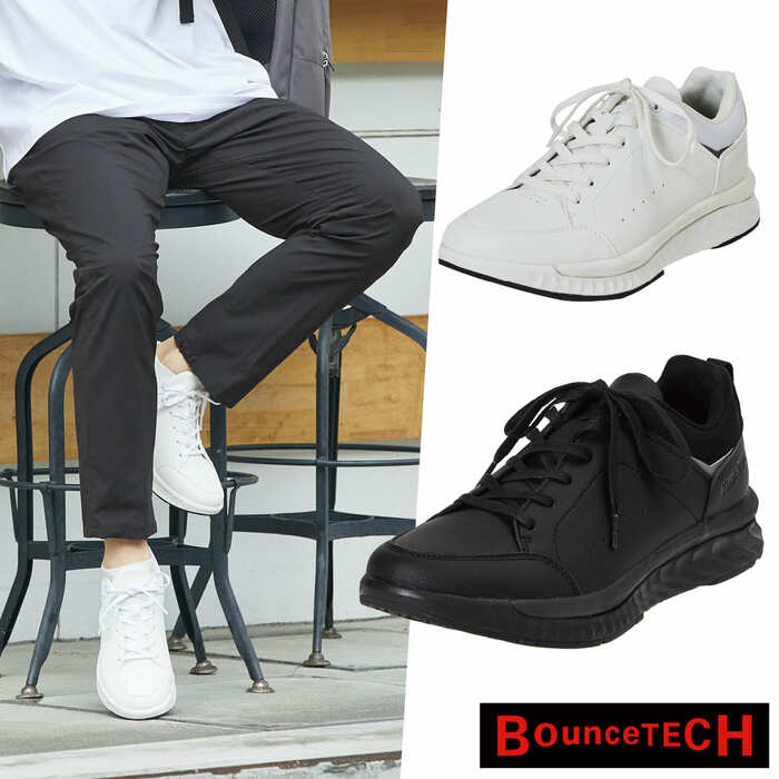 高反発素材「バウンステック」を使用した歩きやすいスニーカーです。本革風素材が足をホールドしてくれるため、ウォーキング用のスニーカーにぴったり!