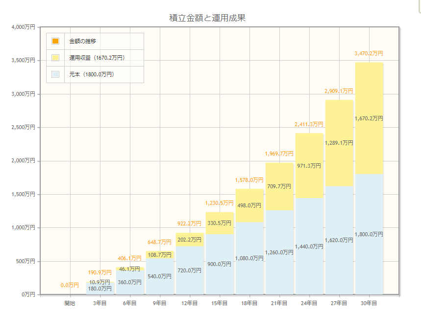 また、掛金月5万円の投資でも、複利4%で運用できれば30年で3000万円以上貯まります(図表2参照)。