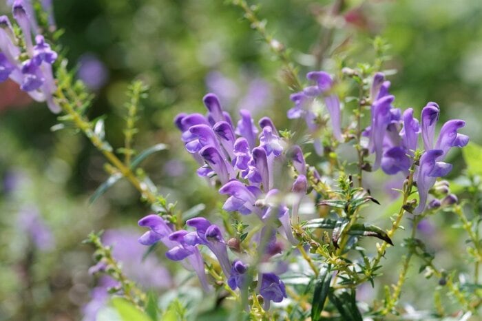 パープルやブルーの美しい花を咲かせるスクテラリア。日本に自生するタツナミソウの仲間で、楚々とした雰囲気の多年草です。