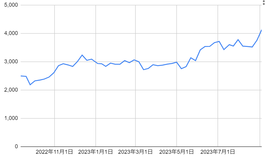 - 1年後の株価の終値:4131円