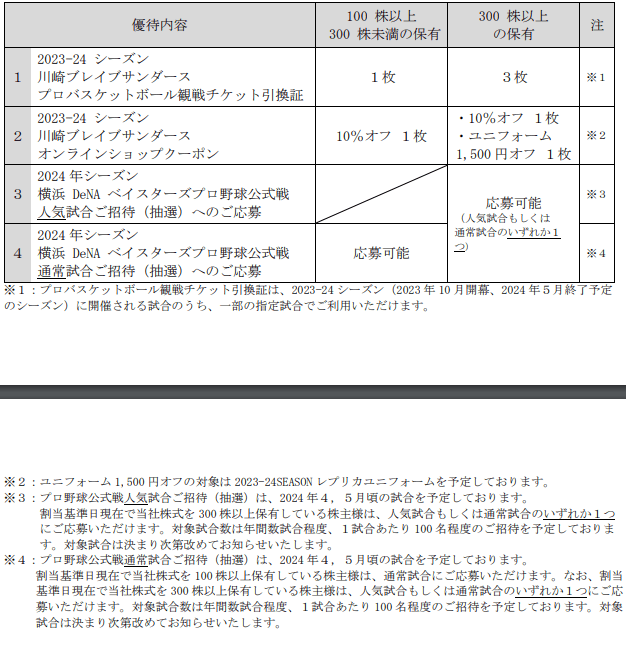 ディー・エヌ・エーは、2023年9月30日現在の株主名簿に記載または記録された100株以上保有の株主を対象に、優待品を贈呈しています。