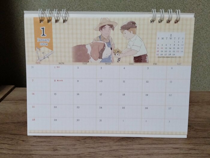 こちらは『あらいぐまラスカル』です。ラスカルの成長を追っていくことができるデザインです。12月にはラスカルとお別れする舟の場面のイラストが使われています。