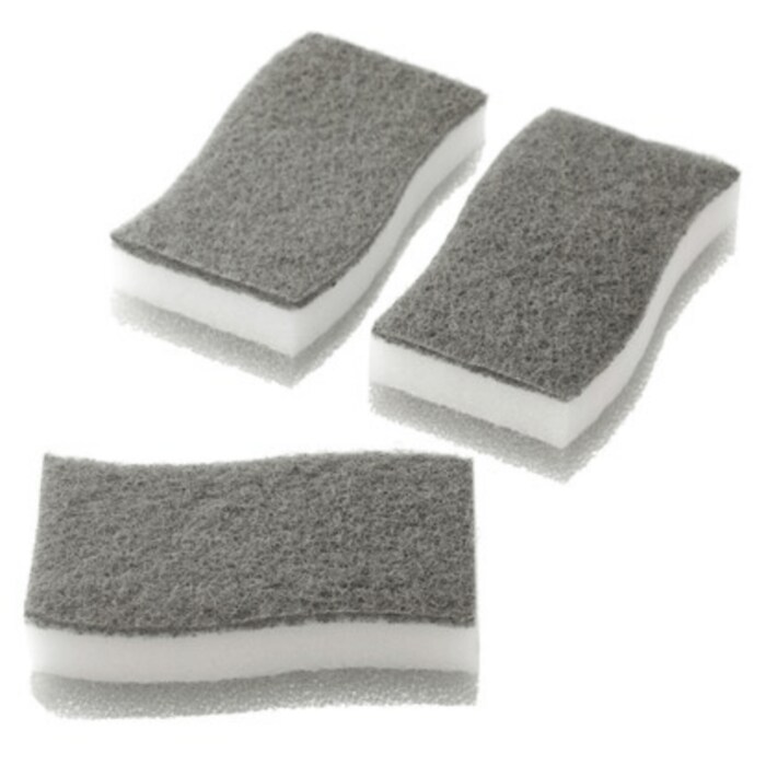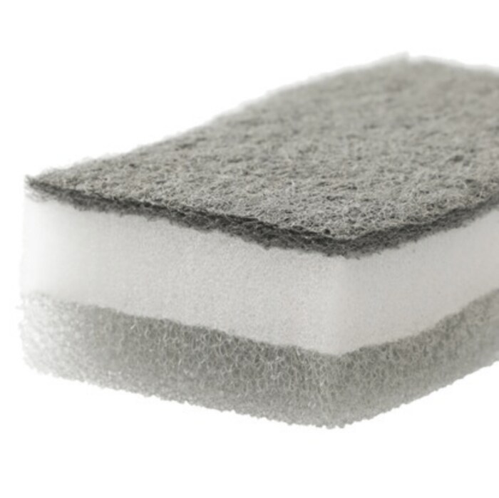 ハードタイプのスポンジです。泡立ちが良い一方でしっかり水が切れるスポンジに、研磨剤入りの不織布を貼り合わせてあります。