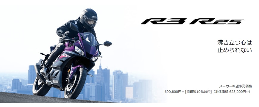 小型二輪にはYZF-R3、XSR900、TMAX560などがラインナップするヤマハ。人気のYZF-R3は、ヤマハのレースマシンYZF-M1をイメージしたハンドルクラウンで、走行性能を高めながらもナチュラルなハンドリングを継承しています。