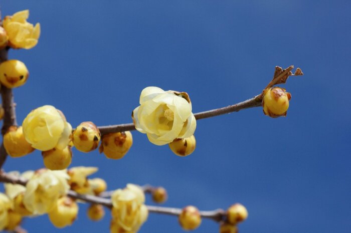 落葉低木のロウバイは冬にロウ細工のような光沢のある花を咲かせる落葉低木です。
