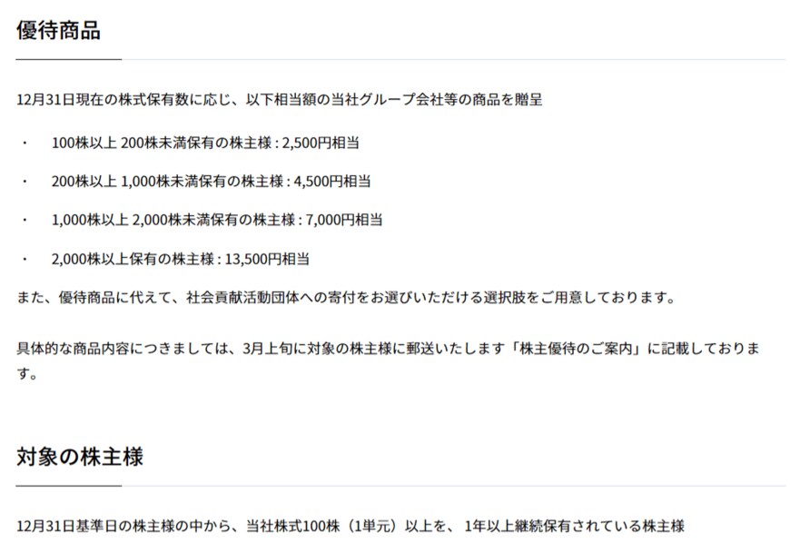 2023年度(2022年12月31日基準日)の株主優待を例に
