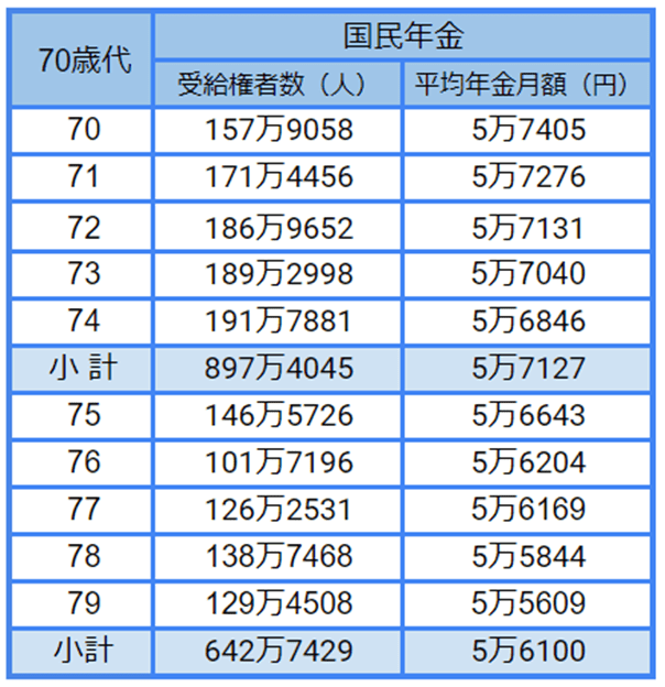 1.3 【国民年金】70~79歳の平均年金月額