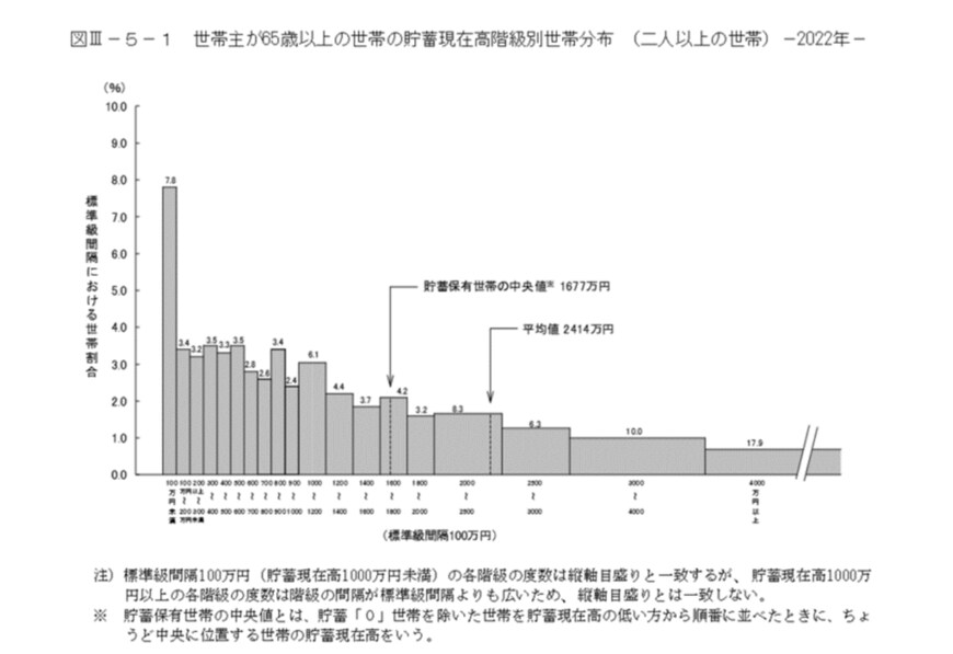 4. 65歳以上「二人以上の世帯」貯蓄額の平均と中央値はいくらか