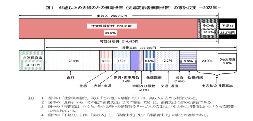 総務省「家計調査報告 家計収支編2022年(令和4年)平均結果の概要」を参考に、65歳以上のリタイア世帯の生活費を見てみましょう。