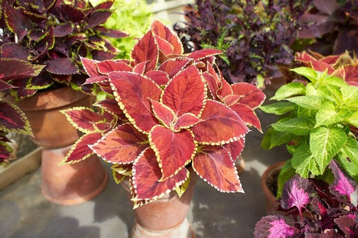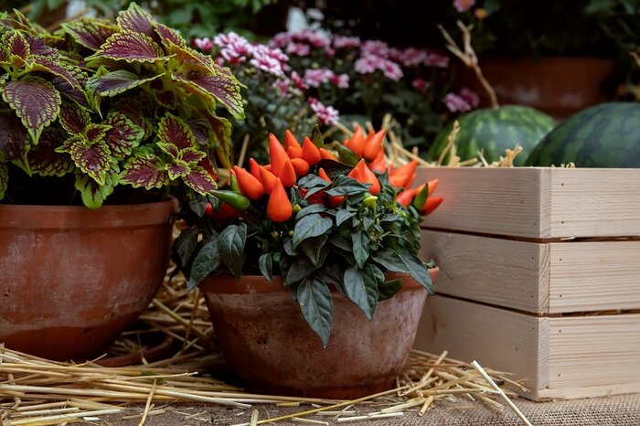 葉色のバリエーション豊かなヒューケラやコリウス、シルバーリーフの葉が美しいシロタエギク、実姿もオシャレな観賞用トウガラシなど多くの種類があり、カラーリーフだけでコンテナガーデンをつくることもできます。