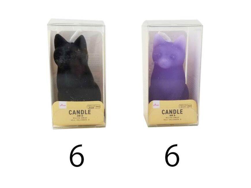 こちらは猫デザインのキャンドルです。お行儀よく座っている猫がかわいらしいです。カラーは、ブラックとパープルがあります。