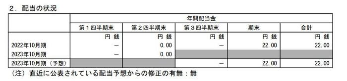 神戸物産の株式を1年前に買い、持ち続けたとすると、「2022年10月期の期末配当」を受け取ることができます。