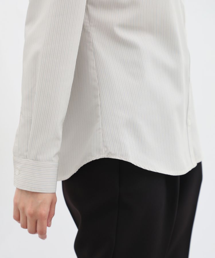 トレンドライクなスタンドカラーがおしゃれな「スタンドフリルシャツ」です。ベーシックデザインのシャツなので、キレイ目コーデだけでなくオフィスコーデにも使いやすいです。