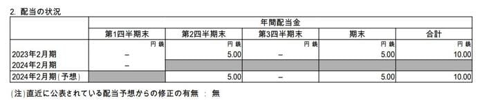 吉野家ホールディングスの株式を1年前に買い、持ち続けたとすると、「2023年2月期の期末配当」と「2024年2月期の中間配当」の計2回を受け取ることができます。