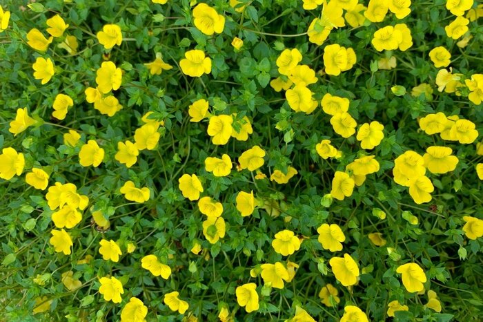 初夏から霜が降りるシーズンまで、黄色い小花で庭を彩るメカルドニア・ゴールドダスト。
