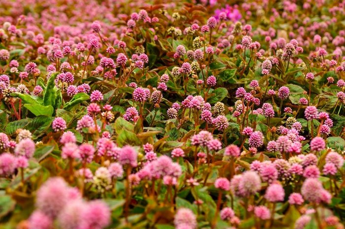 ヒメツルソバは、砂糖菓子のようなキュートな花姿が魅力。耐寒性・耐暑性・乾燥・病害虫に強い強靭な性質をもっています。繁殖力が強くほったらかしでもどんどん増えるので、広い場所でのグランドカバーにオススメ。