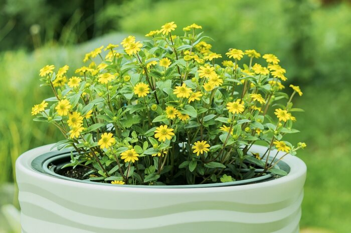 キク科のサンビタリアはイエローの小花が可愛らしい一年草。草丈が10~20センチ程度なので、花壇や寄せ植えの前方に植えるとよいでしょう。グラウンドカバーにも適しています。※参考価格:300円前後(種)