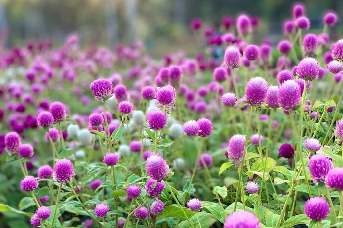 ピンクやパープル、ホワイトの丸い苞がオシャレなセンニチコウ。花壇のアクセントにもおすすめの一年草です。近年は定番カラー以外にもオシャレな花色が登場しており、育てる楽しみが広がっています。※参考価格:200~500円前後(3号ポット苗)