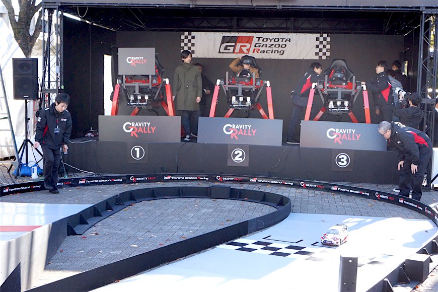 Gravity Rallyは、11月23、22日に代々木公園けやき坂並木で開催された「SIBUYA SPORTS CAR FES 2017(シブヤ スポーツカー フェス2017)」のコンテンツの一つ。主催したのは渋谷公園通商店街振興組合で、協賛企業にCARGUY、タミヤ、トヨタが参加して実現したもの。