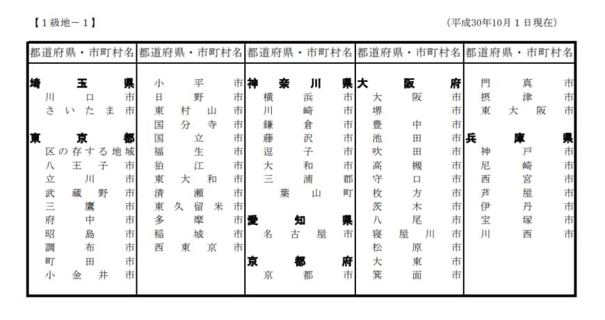 非課税限度額は住んでいる地域の「級地区分」で異なる
