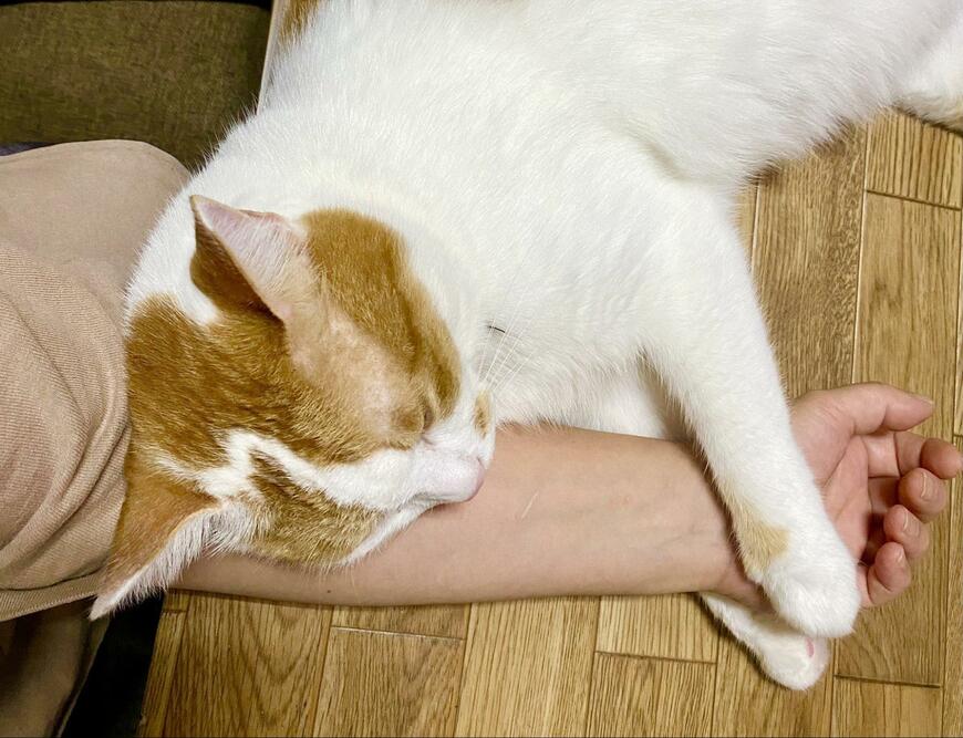 1. 両手でがっちりホールド!かわいい甘えぶりに癒される……