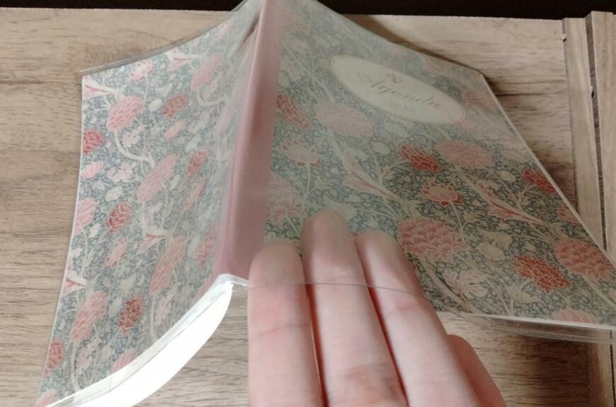 表紙にはクリアカバーもついています。110円(税込)のアイテムながら、高級感があります。