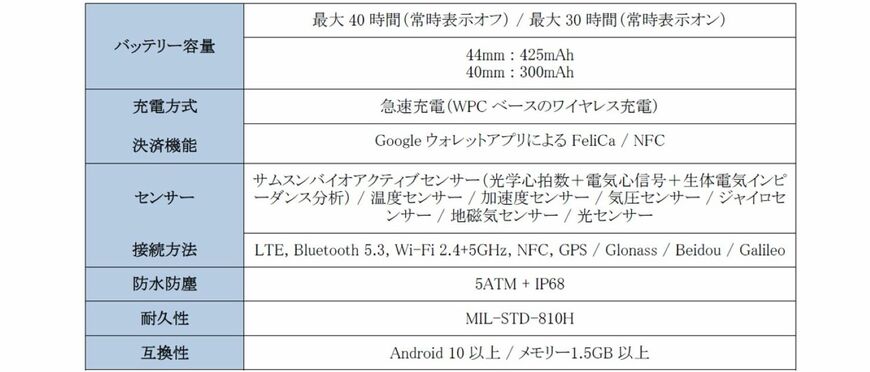 NTTドコモが取り扱う「Galaxy Watch6」のスペック