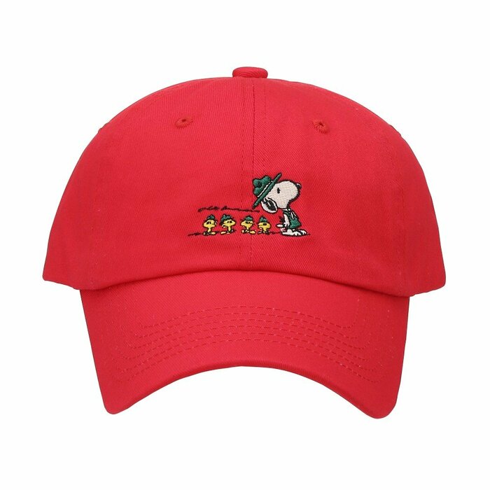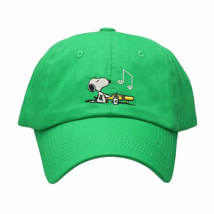 【ベースボールキャップ レッド PEANUTS Beagle Scout・ベースボールキャップ グリーン PEANUTS Piano Snoopy】各3600円(税込)