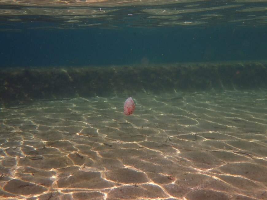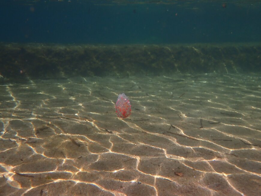 そこに収められていたのは、海の浅瀬を浮遊する生き物。遠くからだとクラゲのように見えますが、カメラがどんどん生き物に近づいていくと…?
