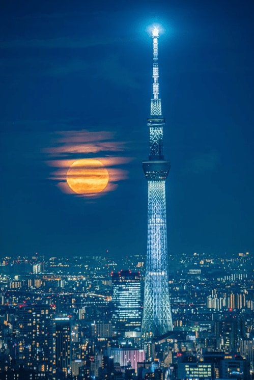 1. 【神々しい1枚】東京の夜景×月を写した写真がSFすぎると話題に