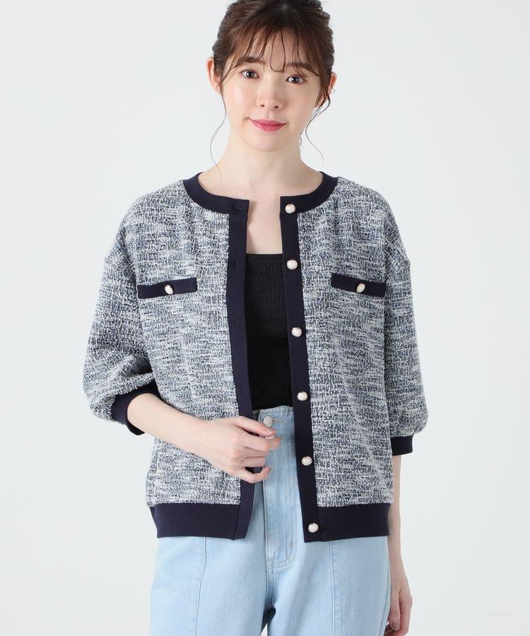 レトロかわいい! 羽織るだけでトレンド感を演出してくれそうな「6分袖ツイード風カーデ」