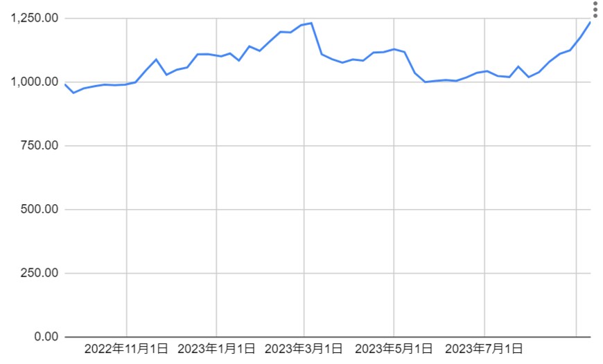 最後に日本郵政の株価と配当金の推移を確認しましょう。