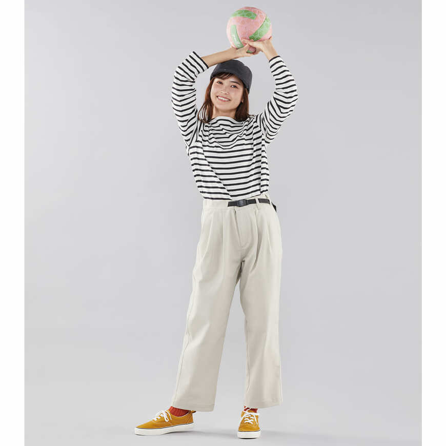 生地にはストレッチ性もあります。履き心地が良く、動きやすいパンツです。アクティブに動かなくてはならないシーンでも快適な着心地を実現してくれます。