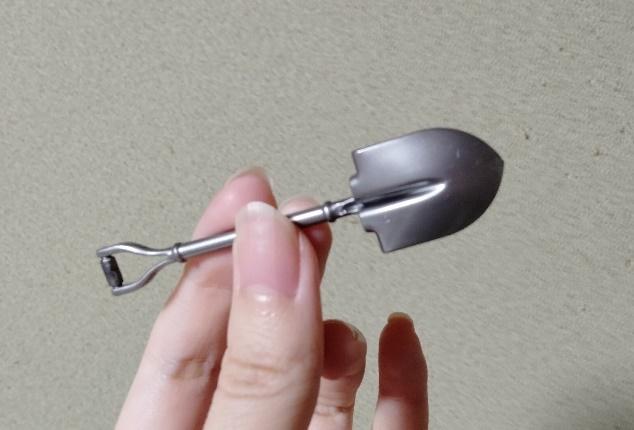 ショベルは本物と同じようなシルバーカラーとなっています。持ち手や先端の曲がり具合など、本物そっくりです。