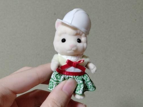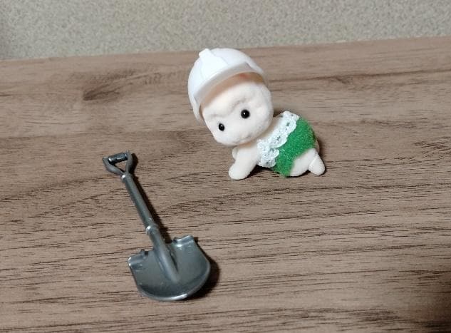 山田化学株式会社の「ミニチュア ショベル&ヘルメット」は、シルバニアファミリーの人形にシンデレラフィットしました。