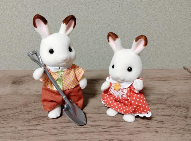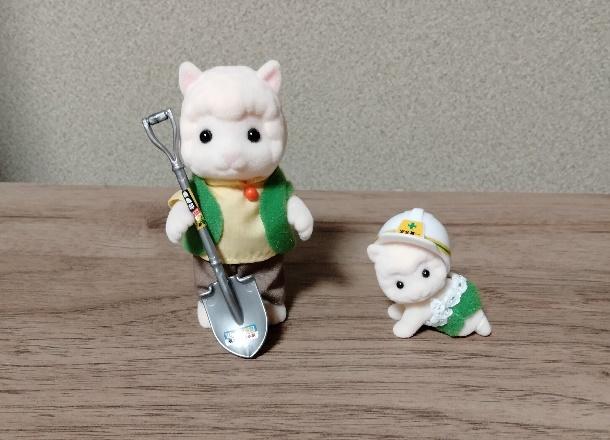 ショベルのほうは、シルバニアファミリーの「お父さん」や「お母さん」の人形が持つのにちょうどいいサイズです。「女の子」や「男の子」には少しだけ大きいサイズです。