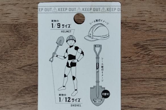 「日本製」や「安全第一」といった面白い内容のシールです。ショベルとヘルメットの好きな場所に貼り付けて、自分好みにアレンジできます。