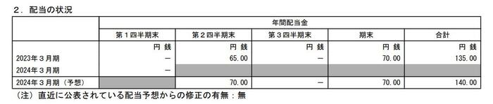 - 2023年3月期・期末配当:70円