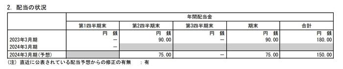 日本製鉄の株式を1年前に買い、持ち続けたとすると、「2023年3月期の中間配当」と「2023年3月期の期末配当」の計2回を受け取ることができます。
