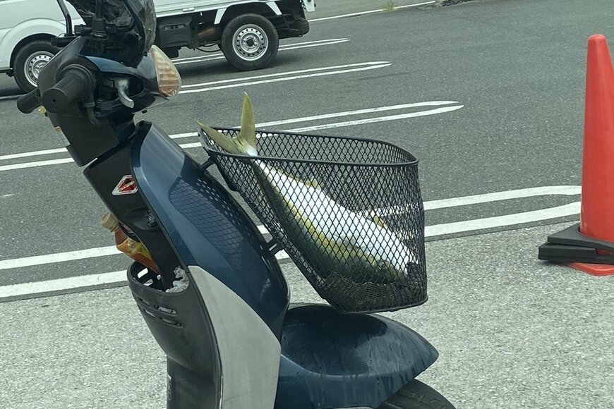 大きな話題を呼んだ、バイクのカゴに直入れされた「ハマチ」。