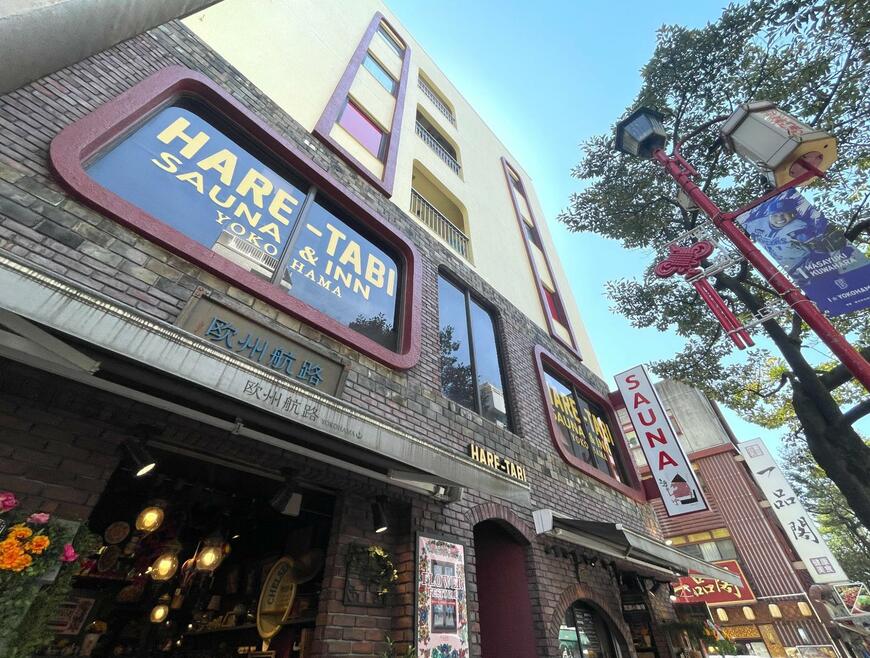 2023年4月横浜中華街内にオープンした「HARE-TABI SAUNA & INN (ハレタビサウナ)」。横浜らしさにこだわり、赤レンガや船内をモチーフとした外観や内装が特徴です。